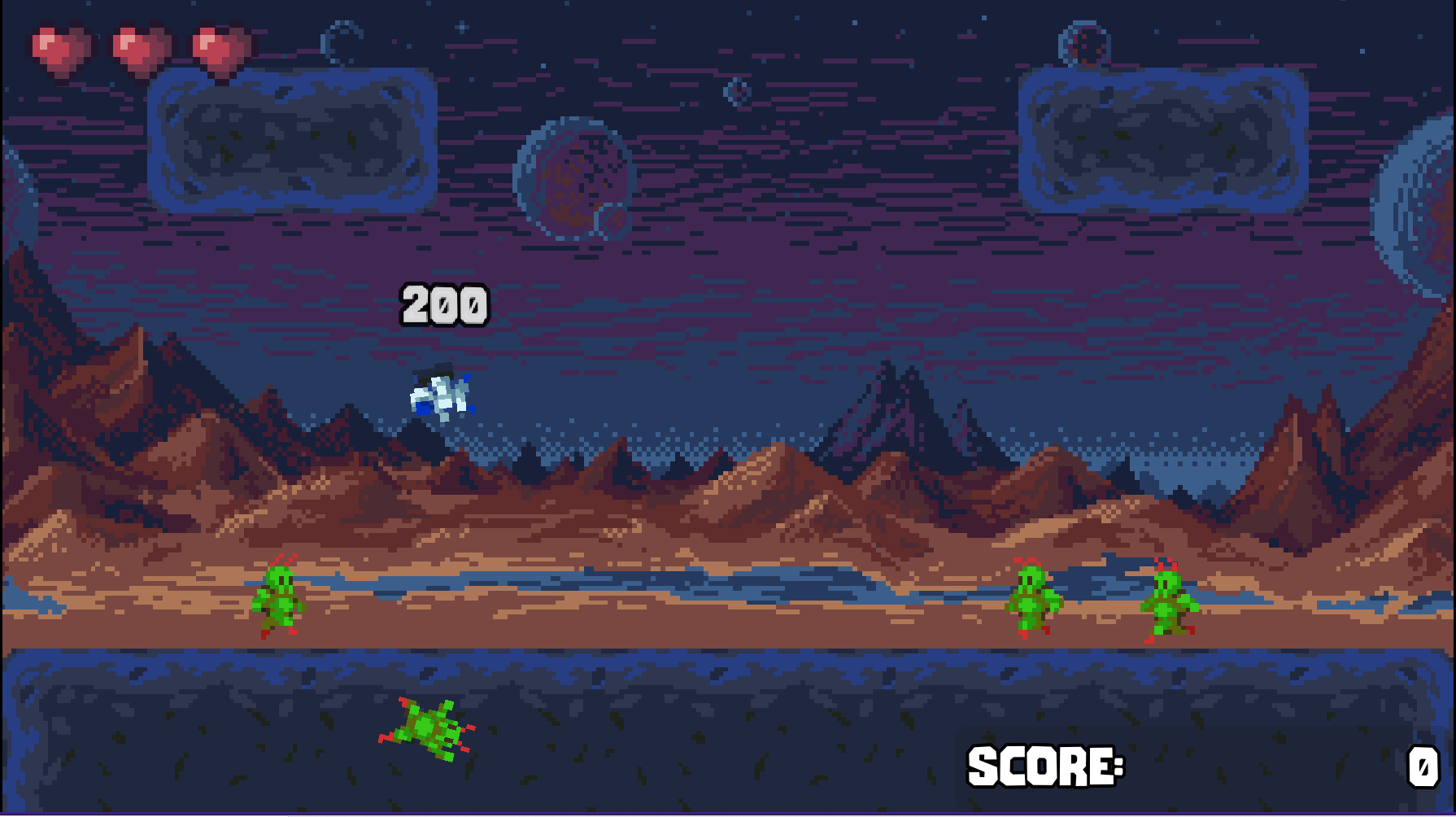 Jumping on an alien makes your character flip 180° and multiplies your points