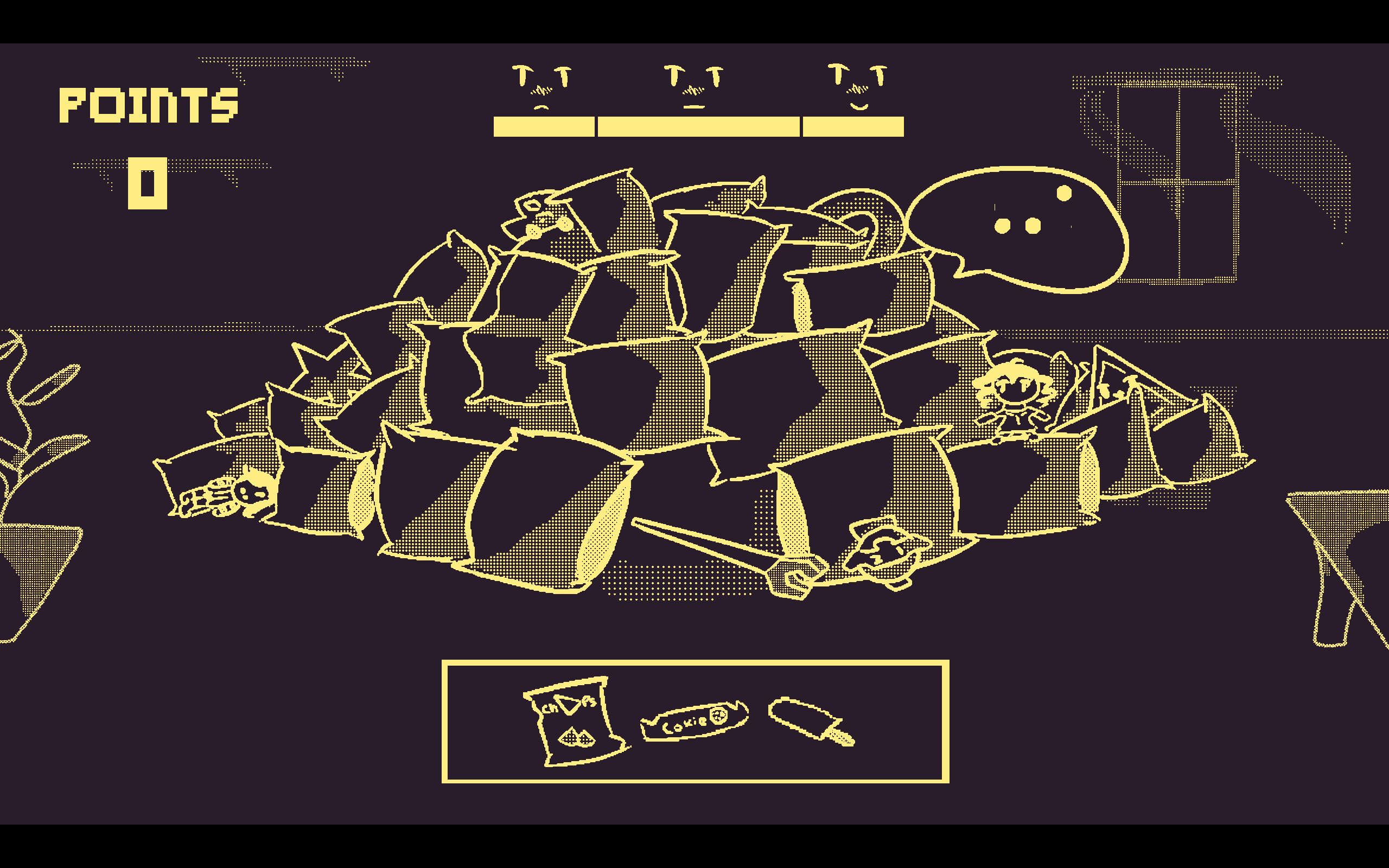 There is something cute yet mildly ambiguous hiding in the pillow fortress, and it seems to be a little... Upset. What have you done to anger it?