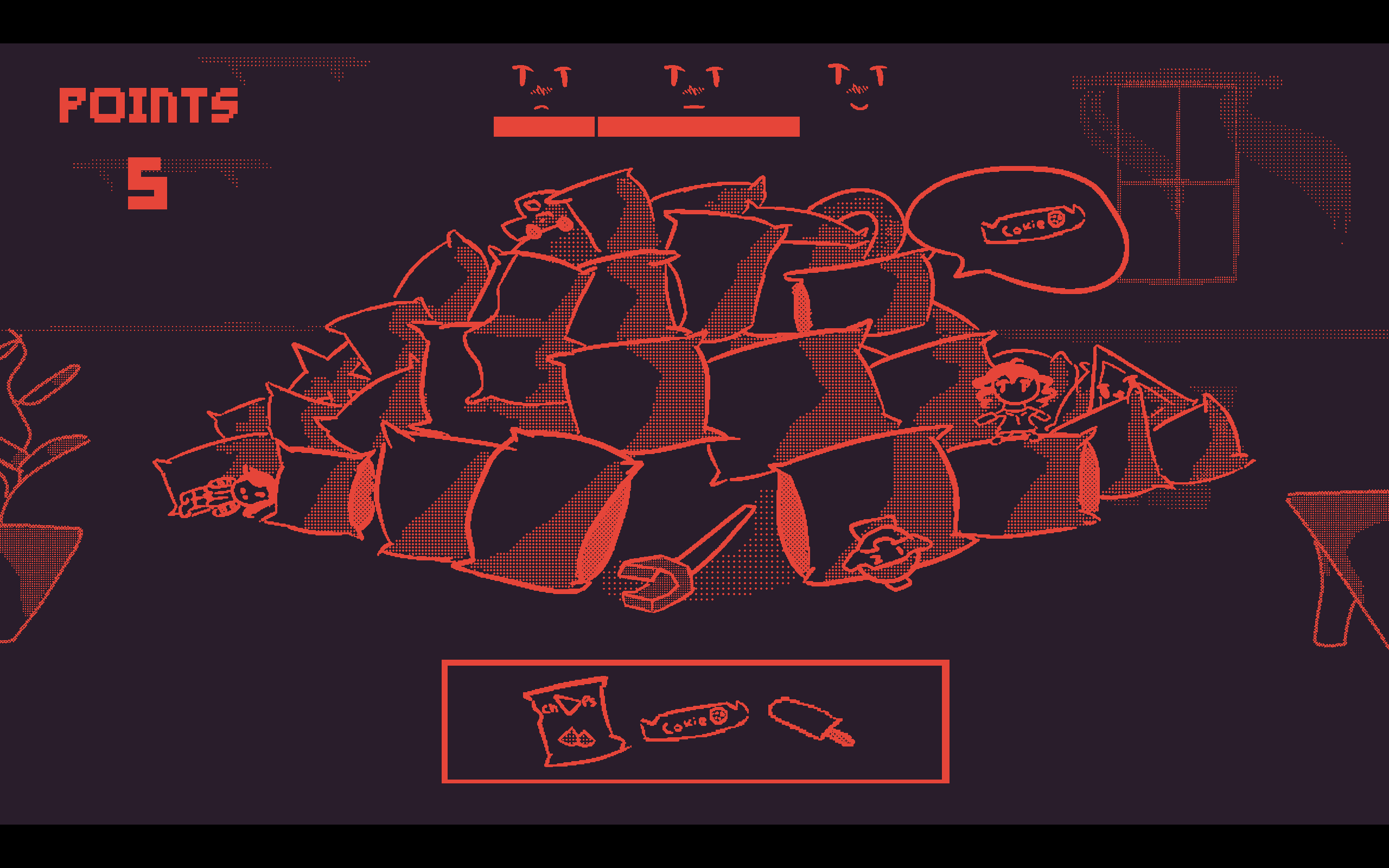 Use the mouse to drag and drop snacks onto the claw (one of the many toys the thing has) to satisfy it and gain points. Look at it's speech bubble to determine what it wants, IF it wants anything.